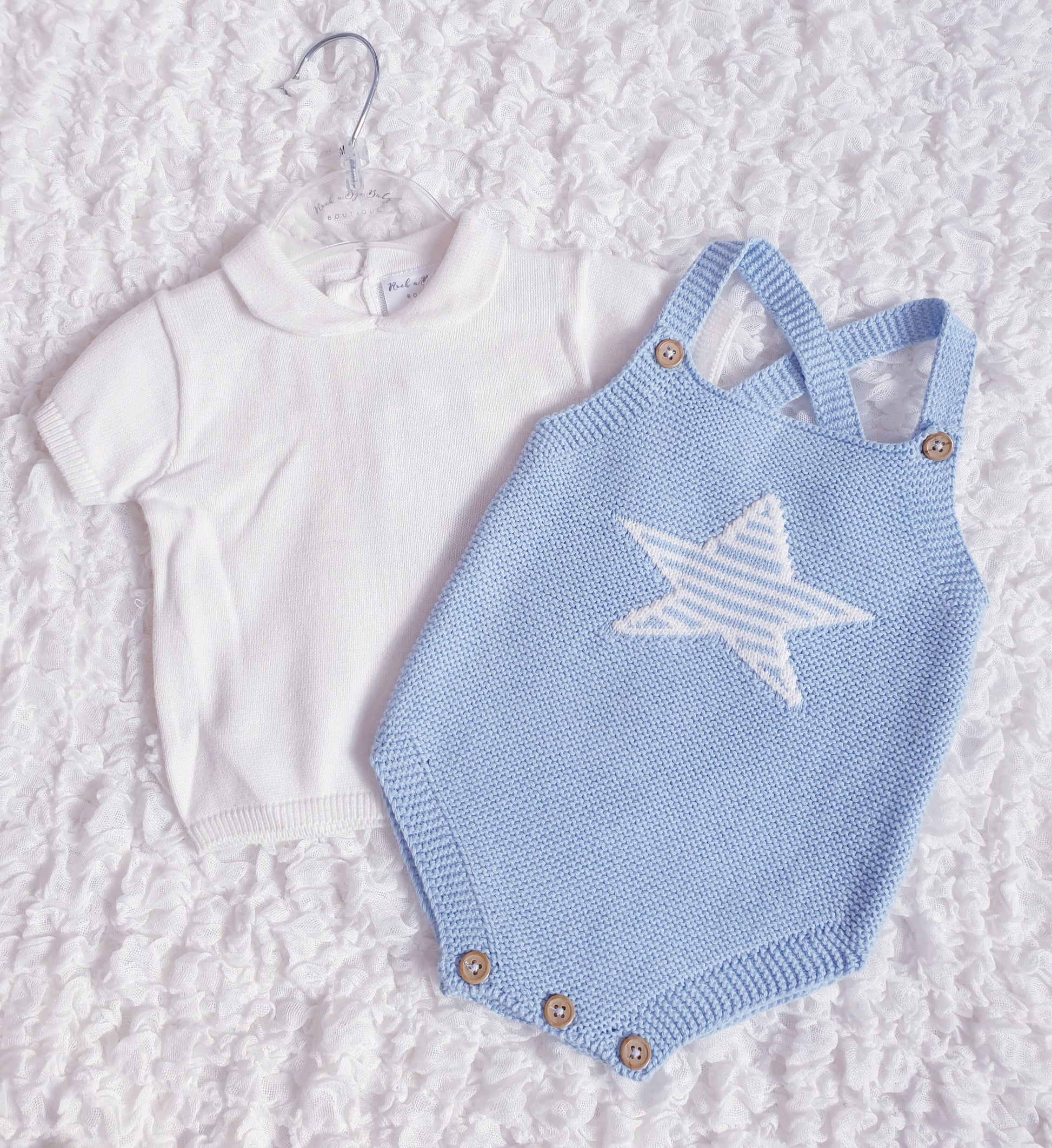 Baby boys blue knitted star romper and matching top