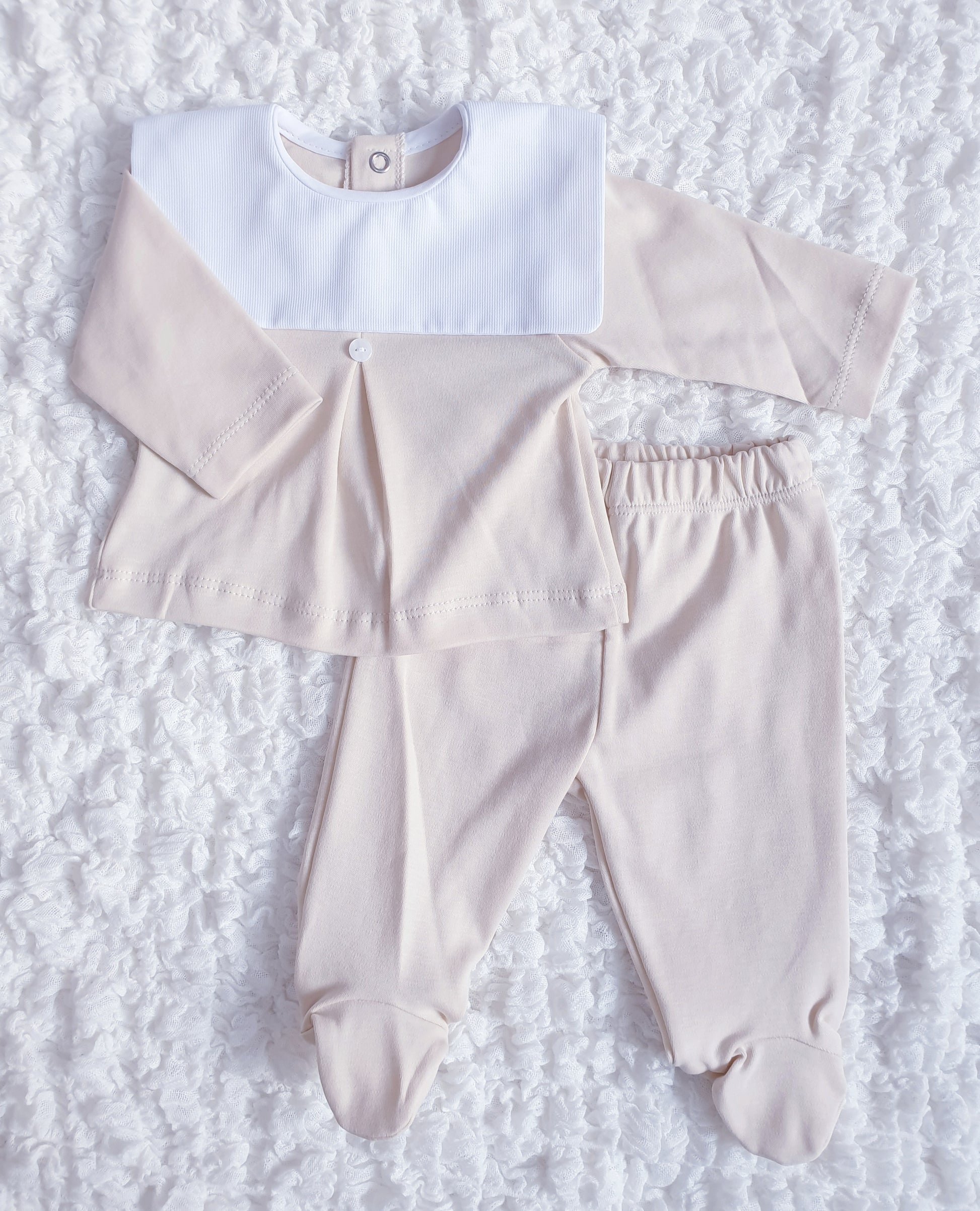 Baby boys Spanish 2 piece set with square collar available in beige,white and blue