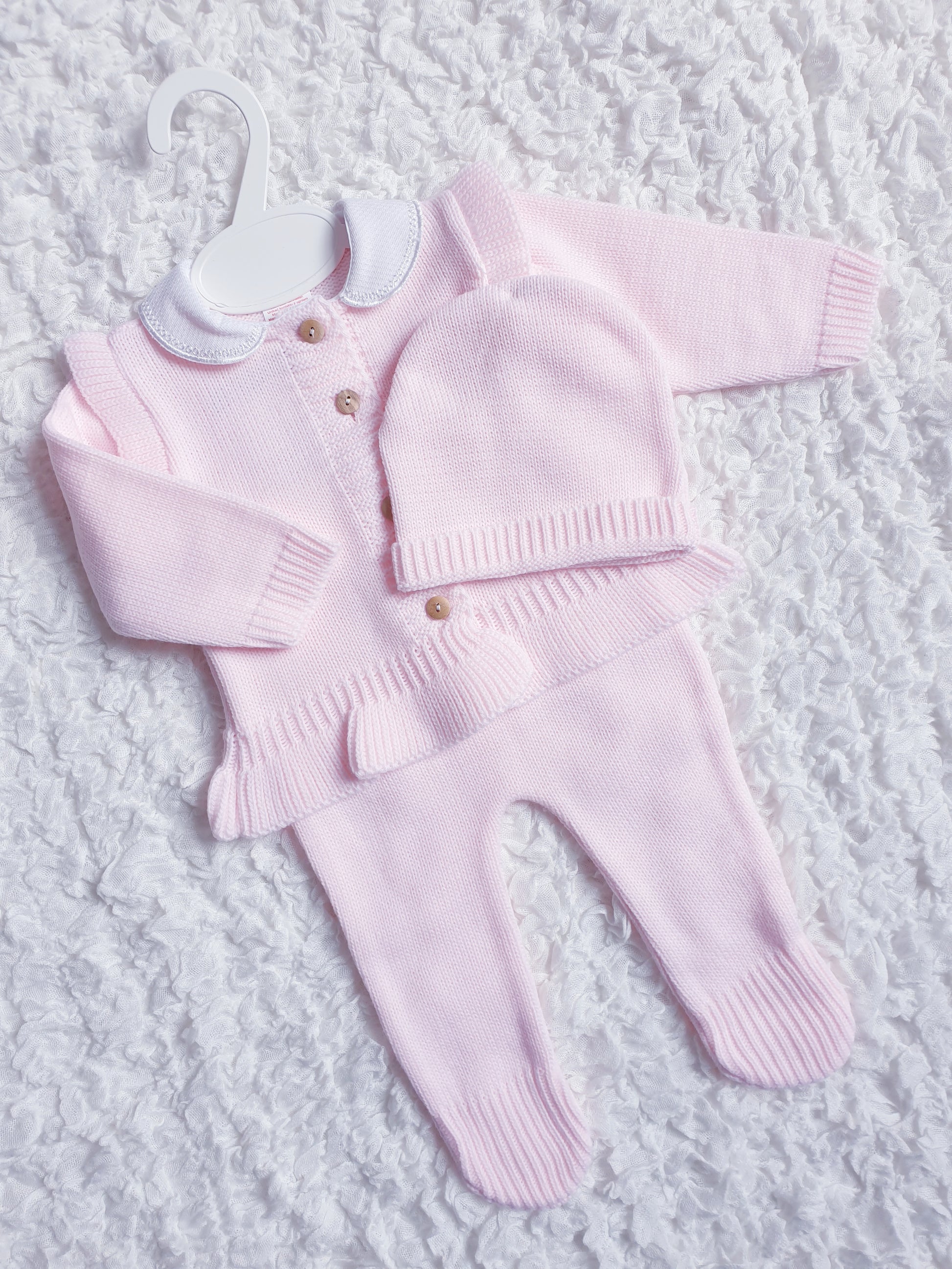 Baby girls pink Spanish knitted cardigan 3 piece set