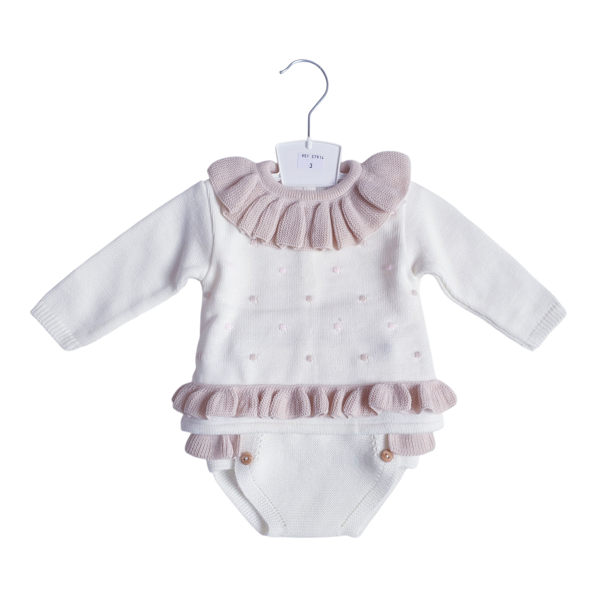 Baby girls Spanish cream with beige ruffle knitted jam pants set