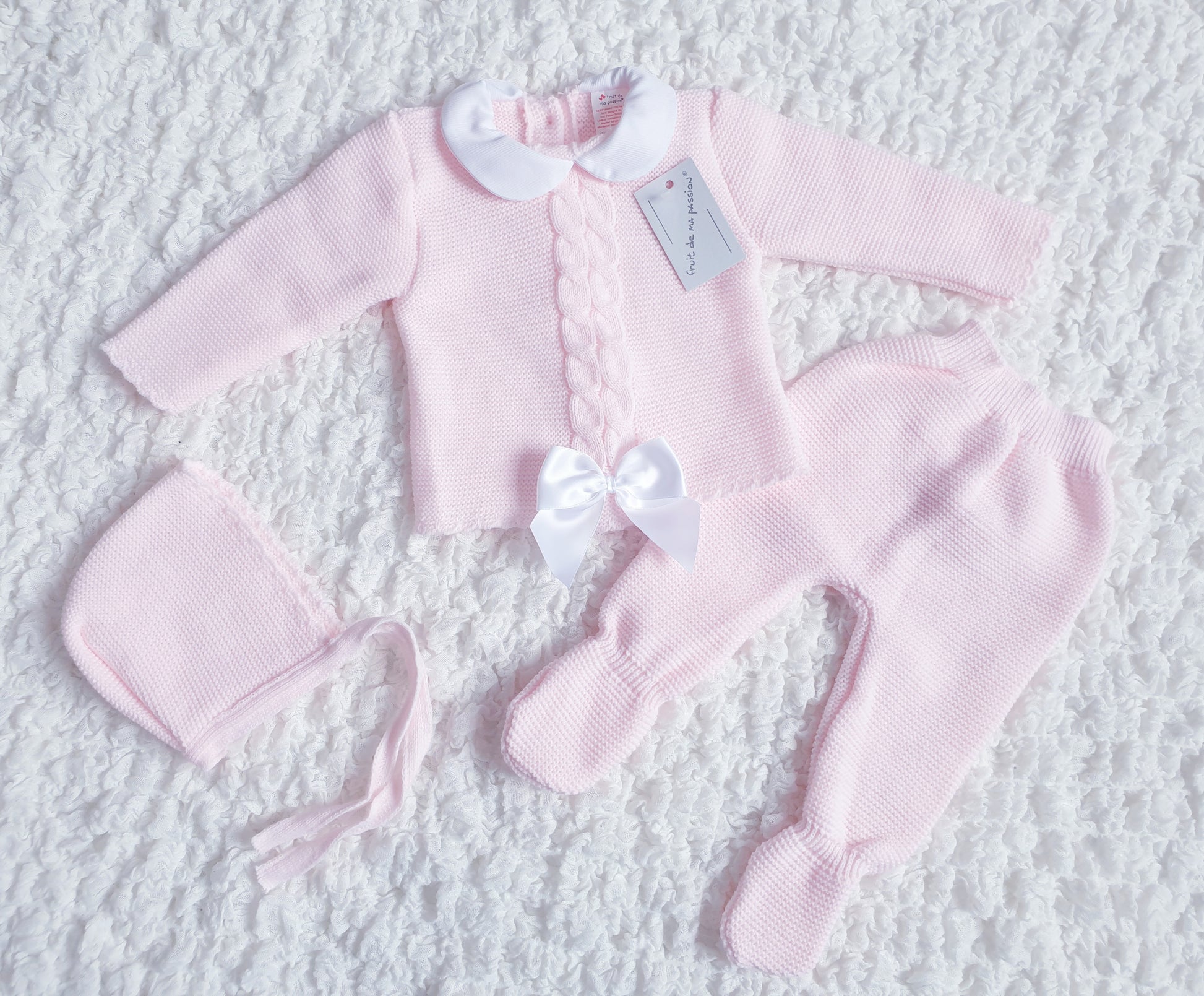 Baby Girls Spanish Pink Bow Knitted 3 Piece Set