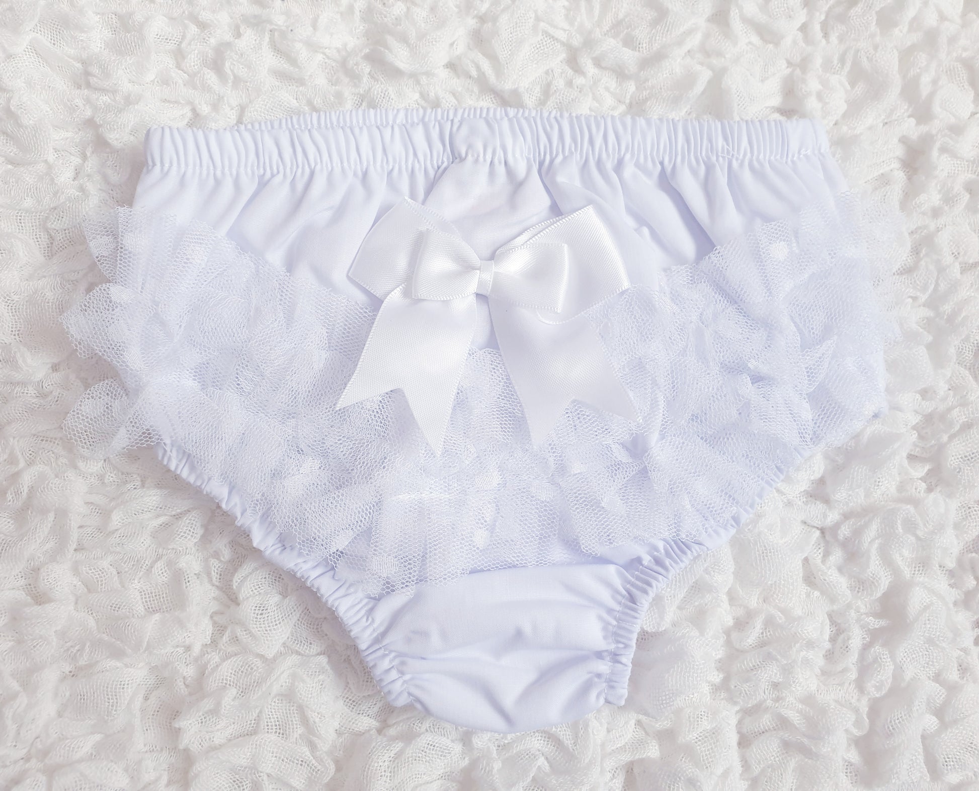 Baby girls pink/white knickers with tutu frill and ribbon bow